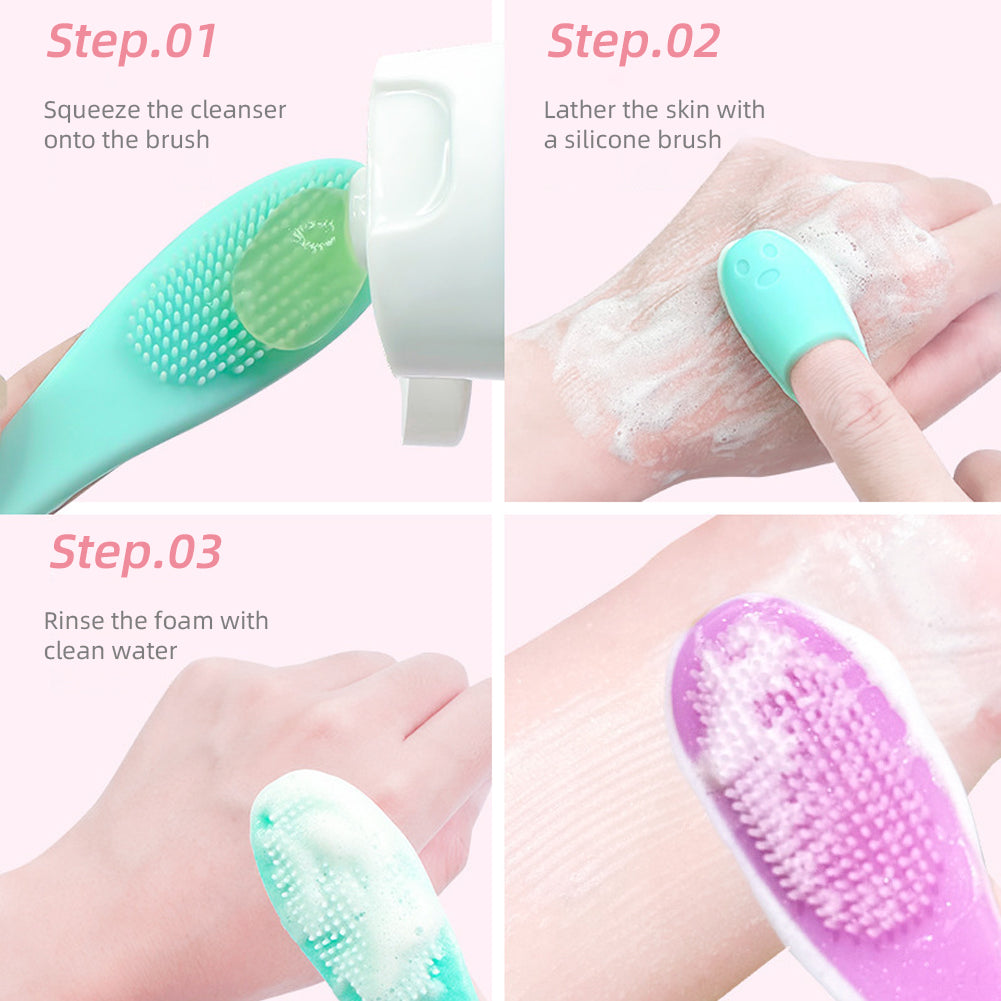 Die Reinigung der Silikonbürste ist einfach! Spülen Sie sie einfach unter warmem Wasser mit milder Seife oder einem Gesichtsreinigungsmittel ab. Reiben Sie die Borsten vorsichtig mit den Fingern ab, um alle Rückstände zu entfernen, und lassen Sie sie an der Luft trocknen. Das Silikonmaterial ist nicht porös und daher resistent gegen Bakterien.